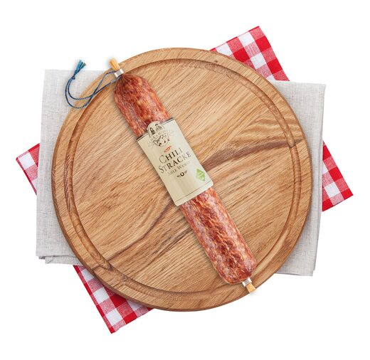 Achtung scharf! Unsere Chili Stracke hält, was ihr Name verspricht. Diese würzige Ahle-Wurst-Spezialität aus magerem Schulterfleisch und bestem Speck wird knackig mit Bio-Chili abgeschmeckt. Sie schmeckt fantastisch auf einem Weißbrot. Tipp: In dünne Scheiben geschnitten auch hervorragend für eine selbstgemachte Pizza geeignet.